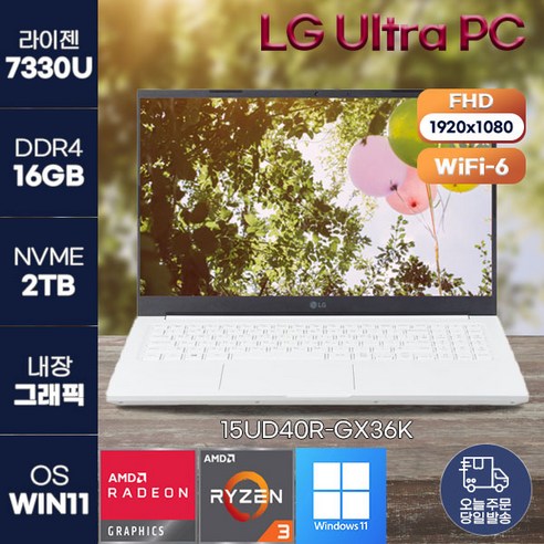 LG 울트라PC 15UD40R-GX36K는 무게가 가벼워서 휴대성이 뛰어납니다. 49Wh 배터리는 장시간 사용을 제공하며, 65W 어댑터는 빠른 충전을 지원합니다. 견고한 구조는 가혹한 업무 환경에서 내구성을 보장합니다.