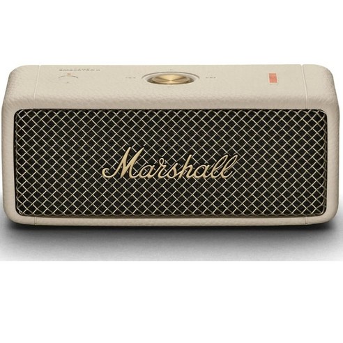 엠버튼 II는 고전적인 마샬 엠프의 모습을 간결하고 현대적인 형태로 재해석한 멋진 디자인을 자랑합니다. 크림색 가죽 디테일과 골드톤 메탈 액센트는 세련됨과 스타일을 더하며, 튼튼한 보호 그릴은 스피커를 충격과 긁힘으로부터 지킵니다.
