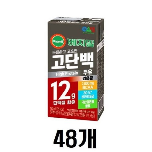 베지밀 고단백두유 검은콩은 완두콩 단백질과 검은콩 농축액으로 만든 고단백질 즉석 음료입니다. 한 잔(190ml)에 단백질 12g이 들어 있어 식사 사이에 간편하게 단백질을 보충하는 데 이상적인 선택지입니다. 또한 설탕 첨가 없이 맛있는 검은콩 풍미를 제공하여 단맛에 대한 걱정 없이 건강한 대안을 찾는 사람들에게 적합합니다.